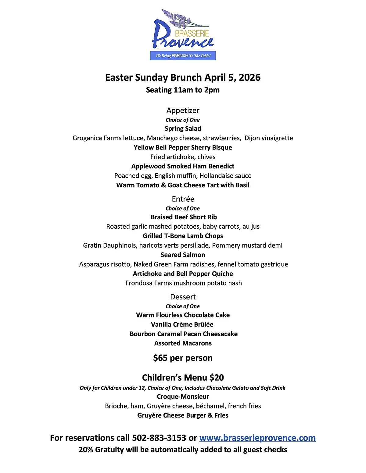 EASTER BRUNCH Sun April 5