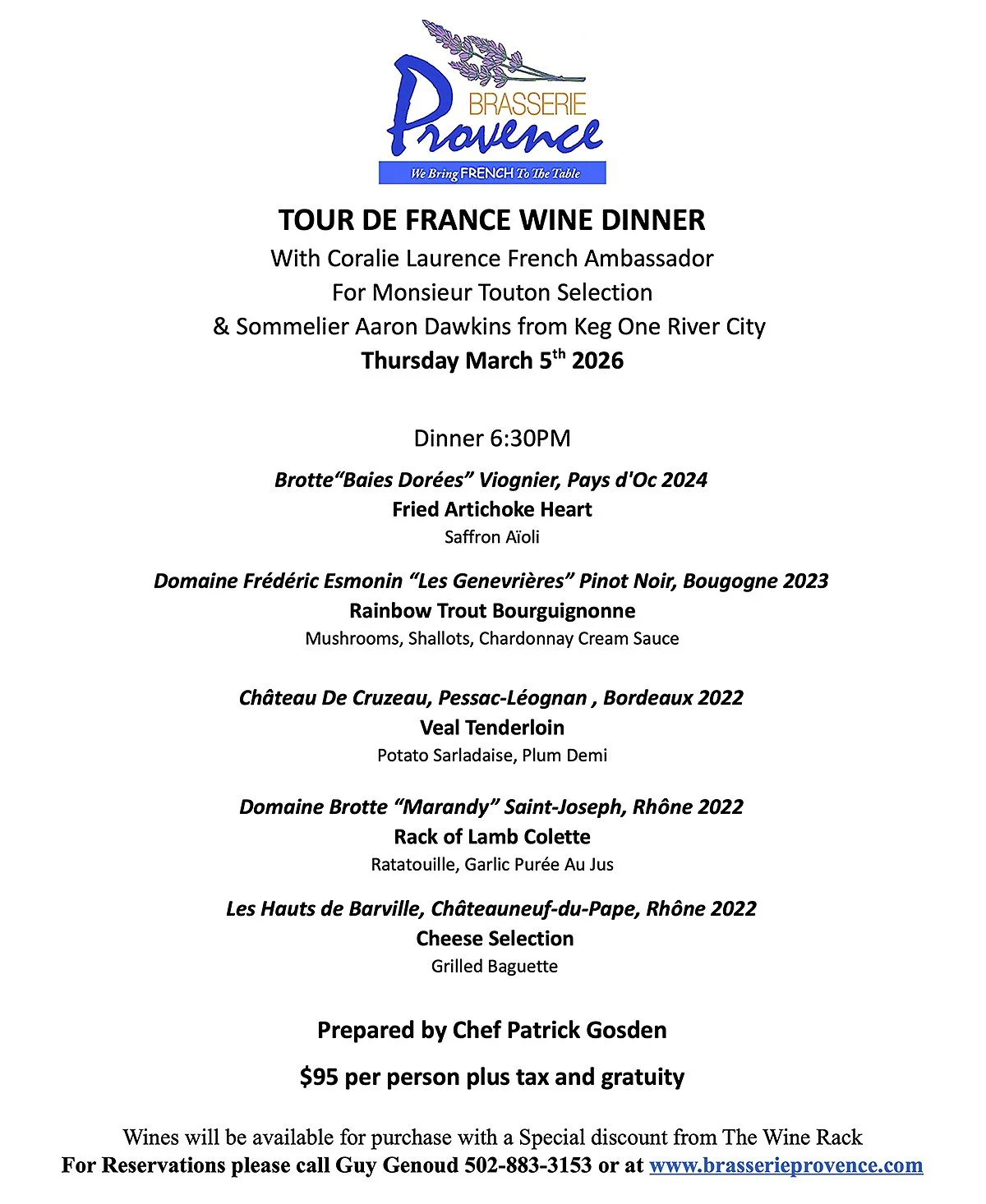 M. TOUTON TOUR de FRANCE 5-COURSE WINE DINNER